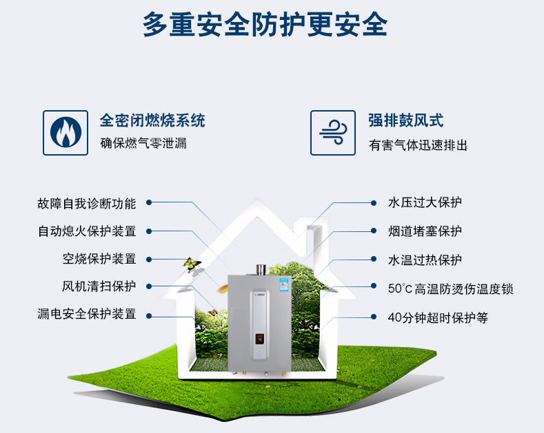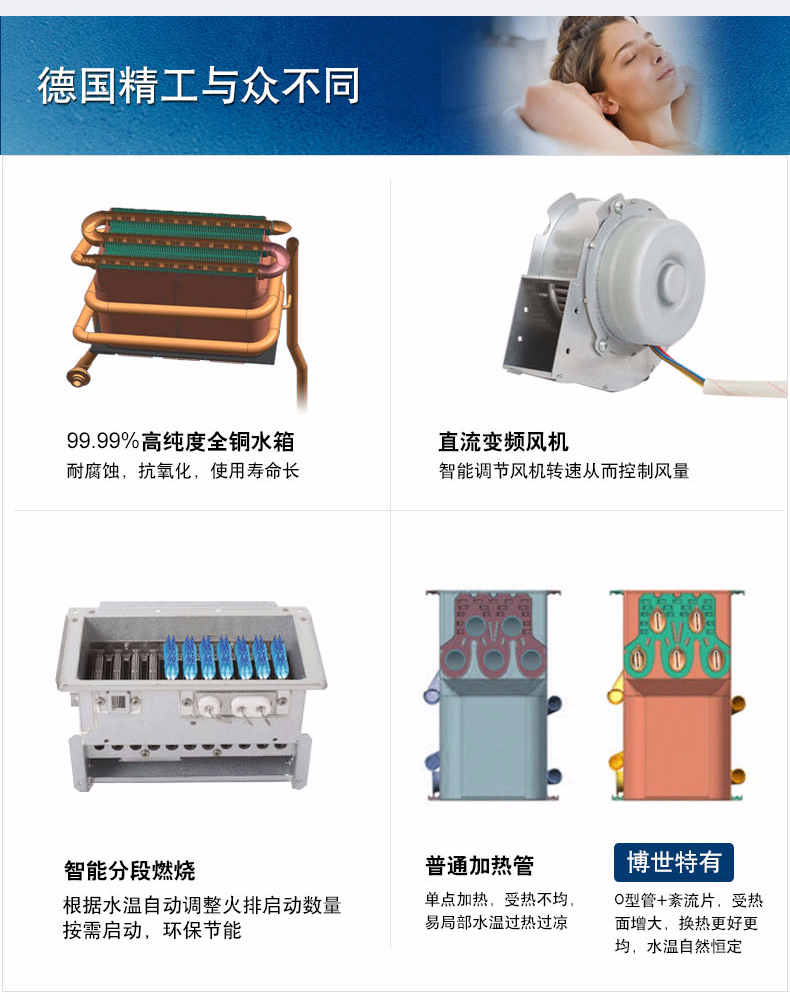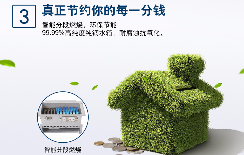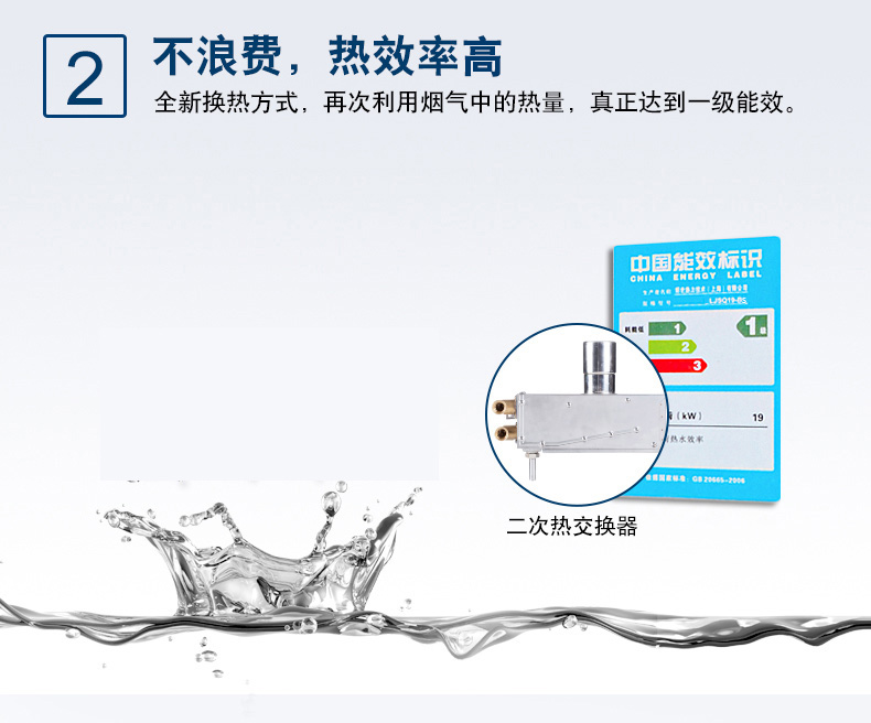 集先進的冷凝技術和智能恒溫為一體,通過二次熱交換器,充分吸收高溫煙氣中的剩余熱量(潛熱部分)來預熱冷水,再通過主熱交換器,實現(xiàn)熱效率達100%以上。