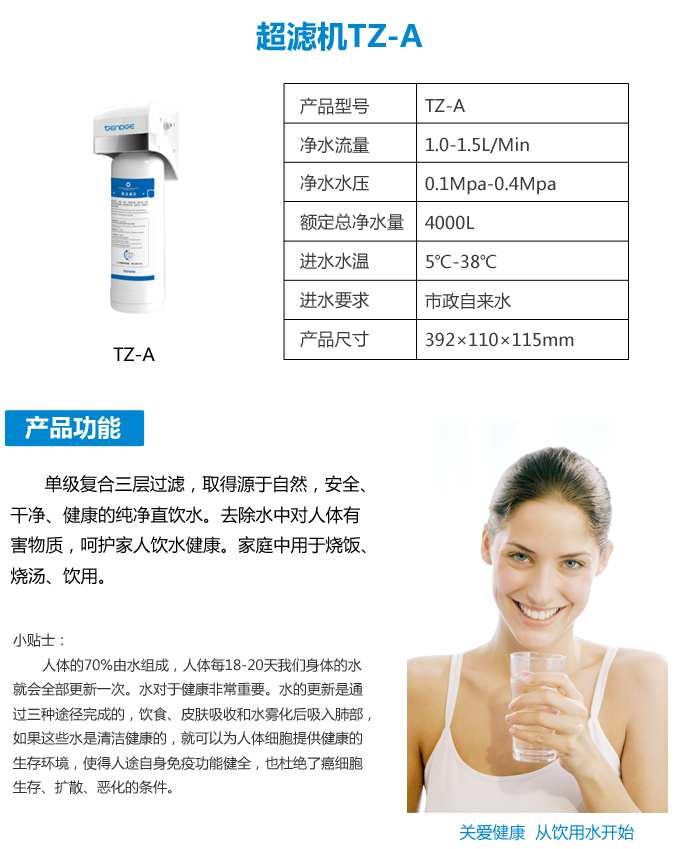 有效去除水中的異色、異味、余氯、細菌病毒等;同時保留對人體有益的礦物質(zhì)??捎糜跓垺郎?、喝水、洗水果等。