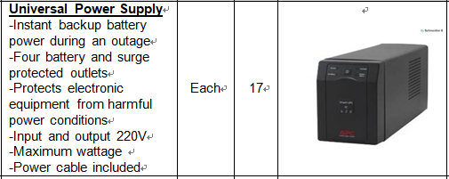項目名稱:約旦不間斷電源(UPS)與電壓轉(zhuǎn)換插線板采購