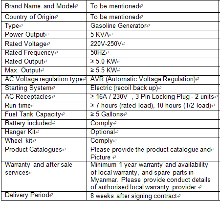 貨物名稱與數(shù)量:5KVA汽油發(fā)電機20臺
