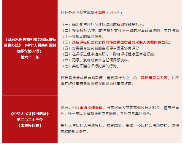 最后,在評審過程中,采購人或采購代理機構(gòu)發(fā)現(xiàn)評標(biāo)專家存在發(fā)表傾向性意見或者征詢采購人的傾向性意見等違反評標(biāo)紀(jì)律情形時,應(yīng)及時制止,維護評審秩序。