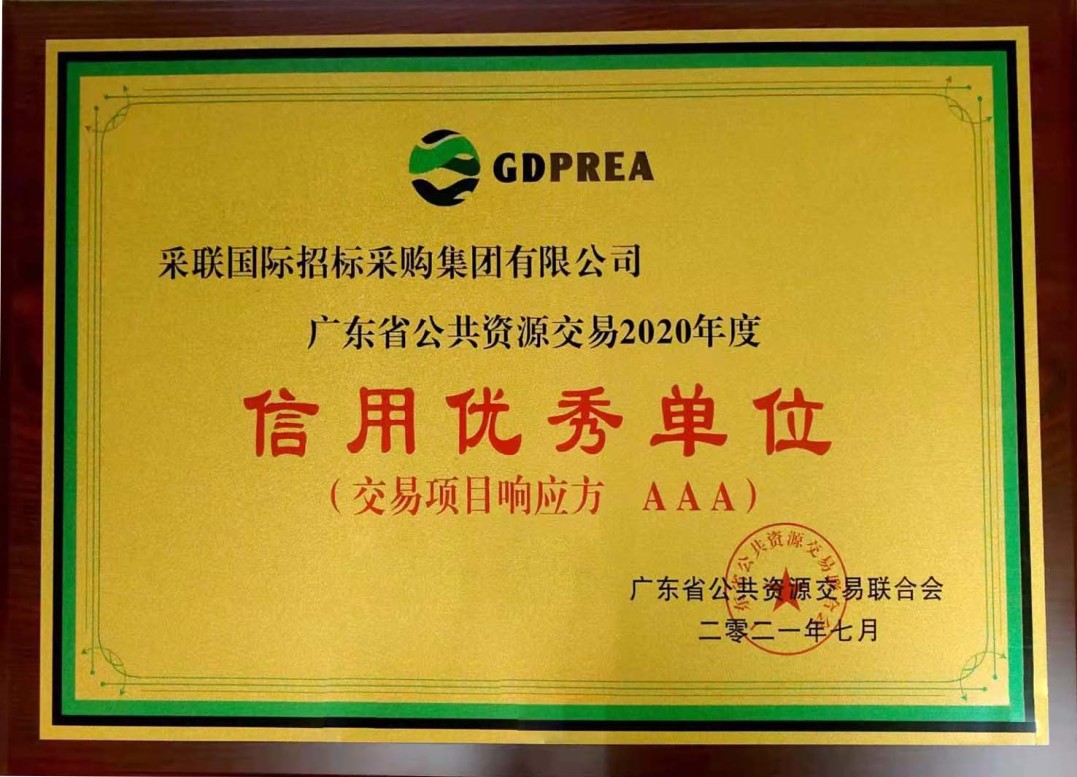 采聯(lián)國(guó)際招標(biāo)采購(gòu)集團(tuán)有限公司(以下簡(jiǎn)稱采聯(lián)集團(tuán))憑借十五年來(lái)對(duì)“正念善行”理念的踐行、對(duì)“正義公平”形象的堅(jiān)守、以及持之以恒推動(dòng)行業(yè)誠(chéng)信體系的建樹,成功入選2020年度廣東省公共資源交易行業(yè)信用優(yōu)秀單位,榮獲“2020年度廣東省公共資源交易行業(yè)信用優(yōu)秀單位(交易項(xiàng)目響應(yīng)方)、2020年度廣東省公共資源交易行業(yè)信用優(yōu)秀單位(中介服務(wù)機(jī)構(gòu))”榮譽(yù)稱號(hào)。