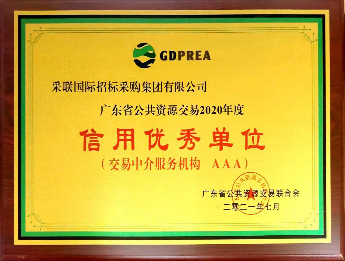 又日新 ▎熱烈祝賀采聯(lián)集團(tuán)榮獲“2020年度廣東省公共資源交易行業(yè)信用優(yōu)秀單位”榮譽(yù)稱號(hào)
