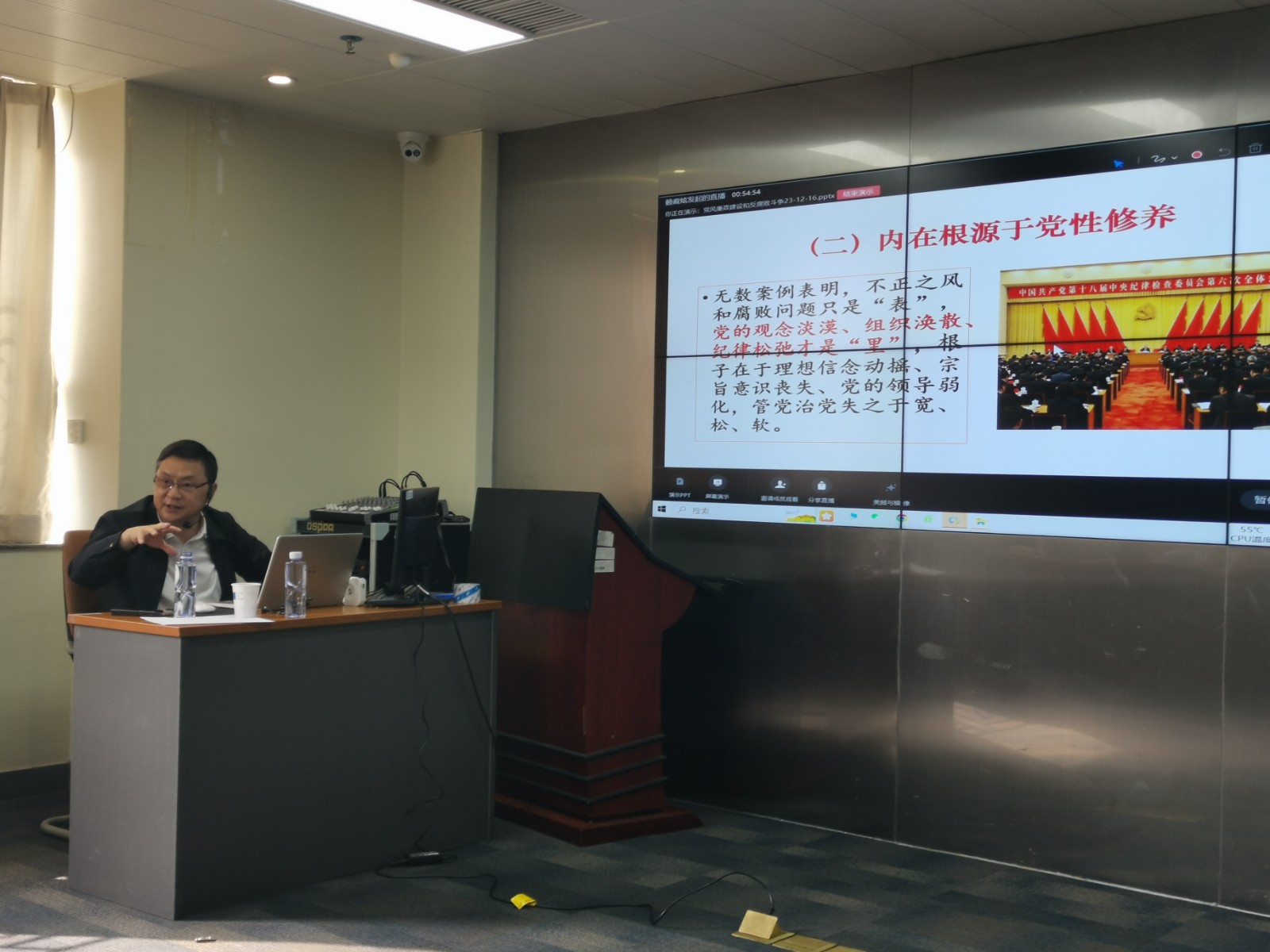 何良蘇教授以“深入推進黨風廉政建設(shè)與反腐敗斗爭”為主題,圍繞“不正之風和腐敗是黨面臨的嚴重威脅”、“不正之風和腐敗問題生成的主要根源”、“推進黨風廉政建設(shè)和反腐敗斗爭思路”三個方面,為大家進行了講授和輔導(dǎo)。